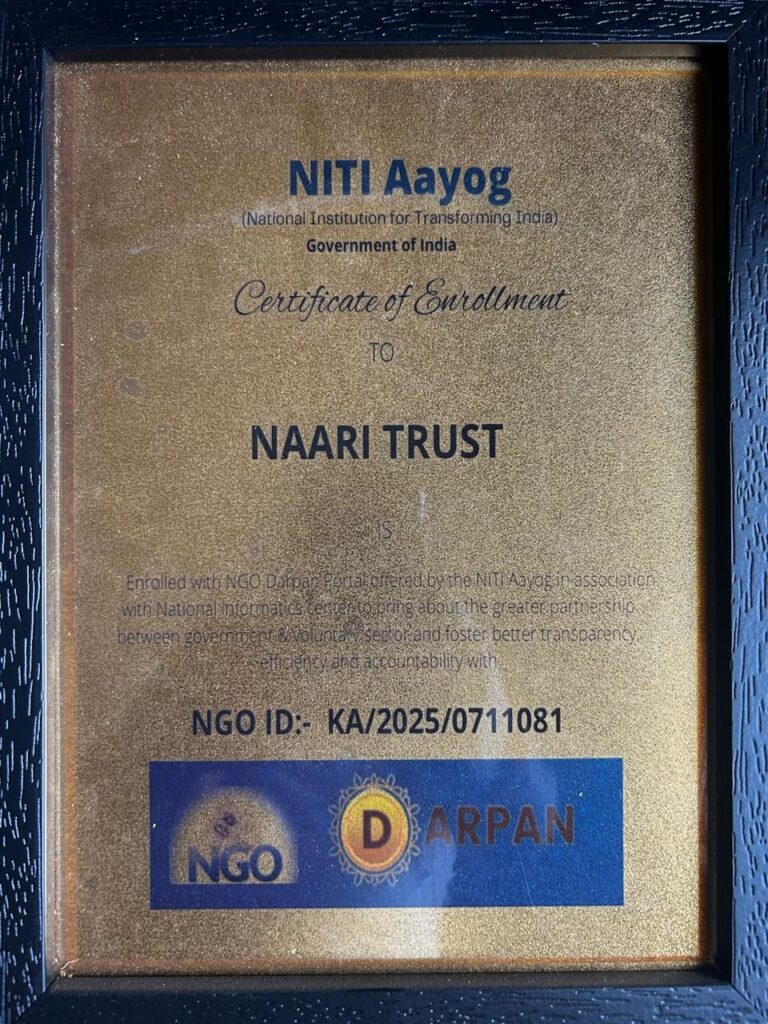 Naari Trust is officially registered on the NGO Darpan portal of NITI Aayog, Government of India, confirming our legal status, verified PAN details, and compliance with national transparency standards.